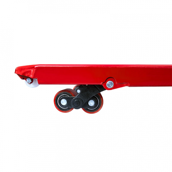Оборудование оснащено усиленным гидроцилиндром, что позволяет легко перемещать тяжелые паллеты и поддоны с грузом даже максимально допустимого веса.
