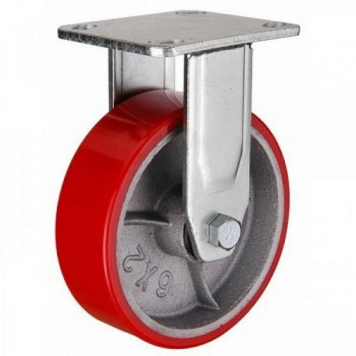 Колесная опора большегрузная неповоротная (полиуретановое покрытие, чугунный обод, в оси - роликовый подшипник)