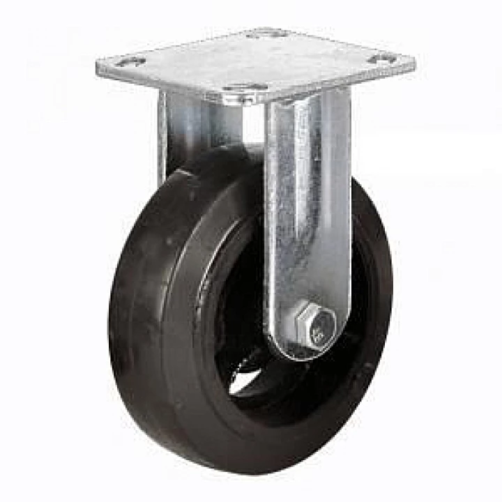 Колесная опора большегрузная неповоротная (литая черная резина, чугунный обод, в оси - роликовый подшипник)