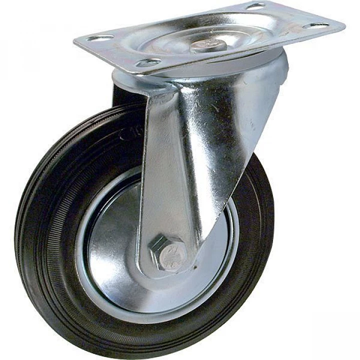 Колесная опора промышленная поворотная (шинка - черная литая резина, обод - оцинкованная сталь, в оси - роликовый подшипник)