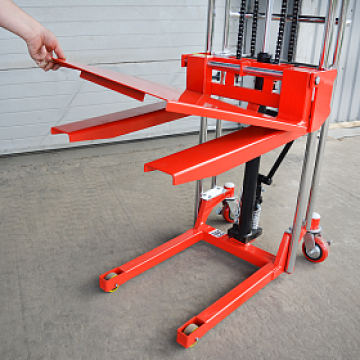 Ручной штабелер с гидравлическим приводом, используемый для работы с грузами весом до 400 кг. Обеспечивает быстрый подъём на высоту до 1,5 метров, что позволяет значительно ускорить процесс проведения погрузочно-разгрузочных работ и размещения на невысоких стеллажах.Подходит для стандартных паллетов (ширина вил 55 см). Возможна транспортировка товаров, не размещённых на поддонах, благодаря оснащению съёмной грузовой платформой.Конструкция сделана из прочных и качественных материалов, что гарантирует отличную устойчивость к высоким нагрузкам и поломкам. Колёса не оставляют следов на покрытии (задние – ведущие).