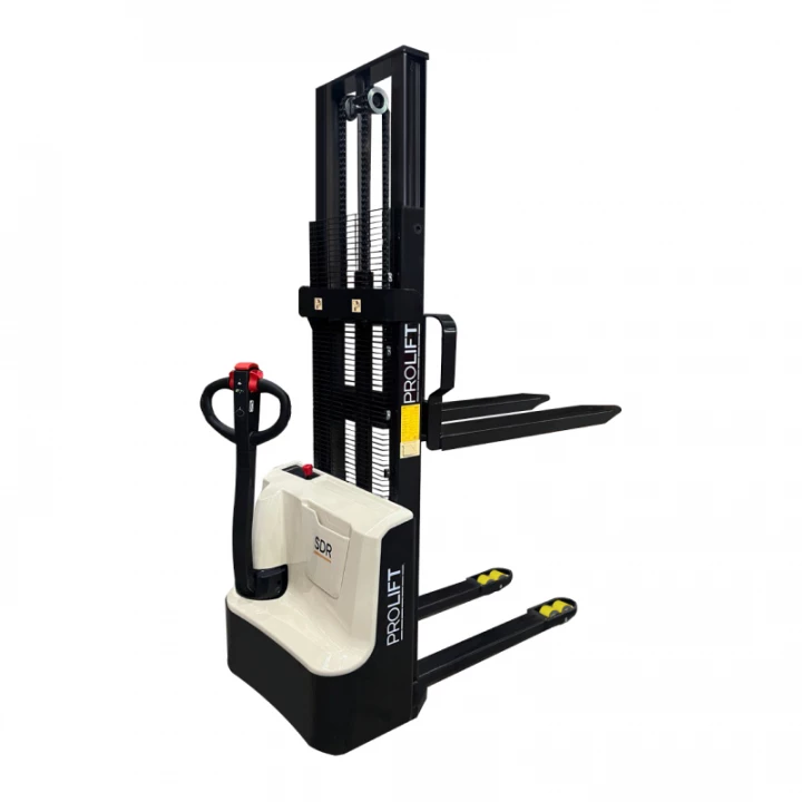 Самоходный штабелер PROLIFT M2 SDR 1035 с литий-ионной АКБ предназначен для поднятия груза весом до 1000 кг на высоту до 3500 мм. Подъем груза и перемещение штабелера осуществляется благодаря двум электродвигателям без необходимости прилагать физические усилия оператору, что значительно облегчает труд сотрудника и повышает производительность. Мачта выполнена из С-образного профиля с дополнительными ребрами жесткости. Благодаря такой конструктивной особенности срок эксплуатации штабелера значительно возрастает. На самоходном штабелере PROLIFT M2 SDR 1035 установлен Li-ion аккумулятор емкостью 50 Ач. Встроенный индикатор заряда показывает напряжение АКБ, что позволит вам всегда поддерживать оборудование в рабочем состоянии. С целью повышения безопасности и комфорта работы сотрудника, на штабелере установлено множество дополнительных элементов, в частности: кнопка аварийного отключения, позволяющая быстро отключить штабелер в случае возникновения опасной ситуации, решетчатый экран на мачте, защищающий оператора от возможных травм, а ручка управления имеет интегрированный замок зажигания и полный набор необходимых клавиш управления, в том числе кнопку «черепашьего хода». Функция «черепашьего хода» позволяет ограничивать скорость движения штабелера для лучшего его позиционирования.