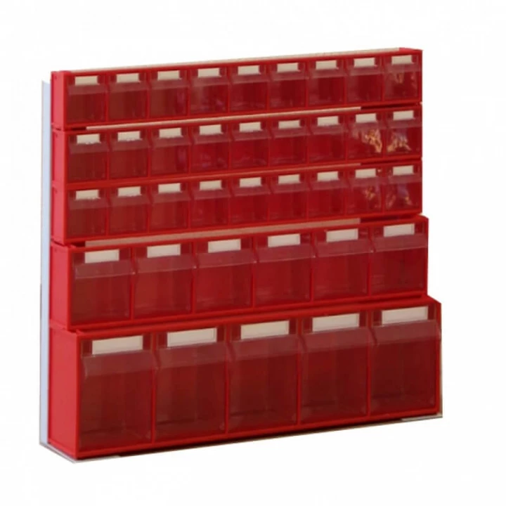 Серый (рама), красный/прозрачный (коробы)